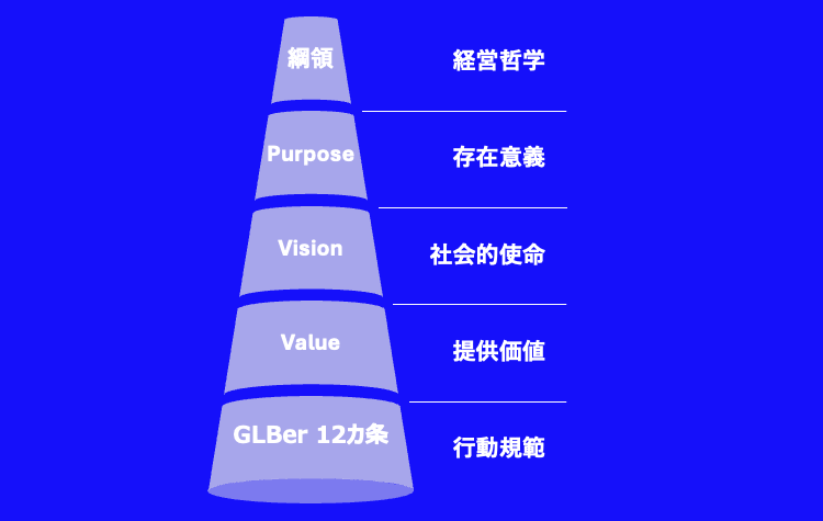 Corporate Credo 企業理念マップ 綱領 産業報世 地球的視野に立脚し、産業発展を通じ世界に貢献する 本質探究 本質的価値を見極め、永続的資産を創出せよ 進取果敢 最先端の発想に挑み、社会を変革せん 至誠一貫 誠実さを貫き、信頼を構築する 自律協調 自律を礎に、互いを尊重し共創せん 2024年11月29日の東証グロース市場への上場を機に、これまでグロービングの社員・顧客・ステークホルダーが潜在的に共感し、実践してきたグロービングの経営哲学をグロービング綱領として明文化致しました。 グロービング綱領は、グロービングが掲げてきた「Purpose/Vision/Value」の根源であり、社員がイキイキと働き、顧客とともに未来を描く、相互主観の創出基盤となります。 グロービング綱領を通じて、グロービングの社員一人ひとり・顧客・ステークホルダーの共感を深め、自身の志や想いと重ね合わせて活動に取り組むことで、グロービングは持続的な価値の創出と社会への貢献を目指してまいります。 Purpose / Vision / Value Our PurposeBe a “Growth” Infrastructure“成長の核となり、世界を進化で満たす存在であり続けます”Our Vision我々は「戦略コンサルティングサービス」を顧客基点で「Joint Initiativeサービス」として再定義する、企業です。「グロービング・インサイド」:我々グロービングは、戦略コンサルタントの伴走支援と、経営オペレーションを高度化・効率化するAI・クラウドプロダクトを通じて、クライアント企業の内部に深く入り込み、変革をドライブします。Our ValuePassion for Winning“勝たせるコンサル”我々は徹底的に“勝ち”にこだわるサービスを提供し、顧客企業を勝てる集団に変革日本の社会が再び成長軌道に戻ることを支援する企業です。 GLBer 12カ条 我々は“Growth infrastructure”である 地球・社会・産業をより良くしていくために、清らかな志をもつ人物たれ Positiveに考え、Proactiveに動く、自燃性P&P人材たれ(単に組織に乗っかる/指示待ち作業者はすぐ変われ!) 自らが常に進化・変化するべく、不断の努力を続けよ(挑戦こそ、最大のコンテンツ!) “戦略コンサルティングサービスを再定義”する存在として “Strategic Joint Initiativeの体現者=経営者と共に歩む戦略伴走者”たれ(職業としての“コンサル屋”ではない!) 自分のスタンスをとる、腹を割る。ぶつかった後に、戦友としてお互いの本気が伝わる 考えるだけでは何も生まれない。まず自ら動くを徹底せよ(熱量で人を巻き込め!) “Passion for Winning”の精神 Client First、ClientへのImpactに全集中せよ(時に産業自体の変革にも踏み込め!) Client/産業/自らの成長と共に、高い目標・成功に向けたいばらの道を存分に楽しもう(Enjoy Working!) “チーム戦”で挑むべし。優れた仲間、優れたサービス、優れたクライアントとの連携は指数関数的インパクトにつながる。 “人”と“Technology”をRespect Technologyが社会を進化させる。Technology(AI/Digital/IT)を恐れるな、徹底的に味方に付けよ。 結局は人(クライアント/同僚)をRespectし、好きになる(または、そうなろうと努力する/自分を変える!) Integrityを起点に人とTechnologyに係わるべし(高い道徳感と倫理感が全ての基点!) 6つのDon’ts デジタルを分からない、業務を知らない、ビジネスを知らないのに、✕✕戦略を描くようなことは、しない 大きなSIやBPOなど、自社ビジネスのボリュームゾーンを自作自演で作り上げるようなことは、しない 本当のプロフェッショナルしか採用、しない 繰り返し使えるノウハウや知見はコンサルティングサービスとして提供、しない(インダストリアライズし安価で提供する:SaaS by GLB) 本当に自社を変革する気のない、クライアントの変革ごっこにお付き合い、しない 自社ですべてのサービス提供を独り占めするようなことは、しない(強みを持つ他ファーム、ベンチャーと積極的にコラボレーション)